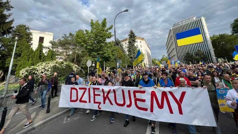 „Dziękujemy, dziękujemy” – skandowali Ukraińcy maszerując w niedzielę Traktem Królewskim. Marsz Wdzięczności, który przeszedł ulicami Warszawy, to inicjatywa Ukraińców, którzy chcieli w ten sposób wyrazić podziękowania dla naszego kraju za wsparcie udzielone po ataku Rosji.
