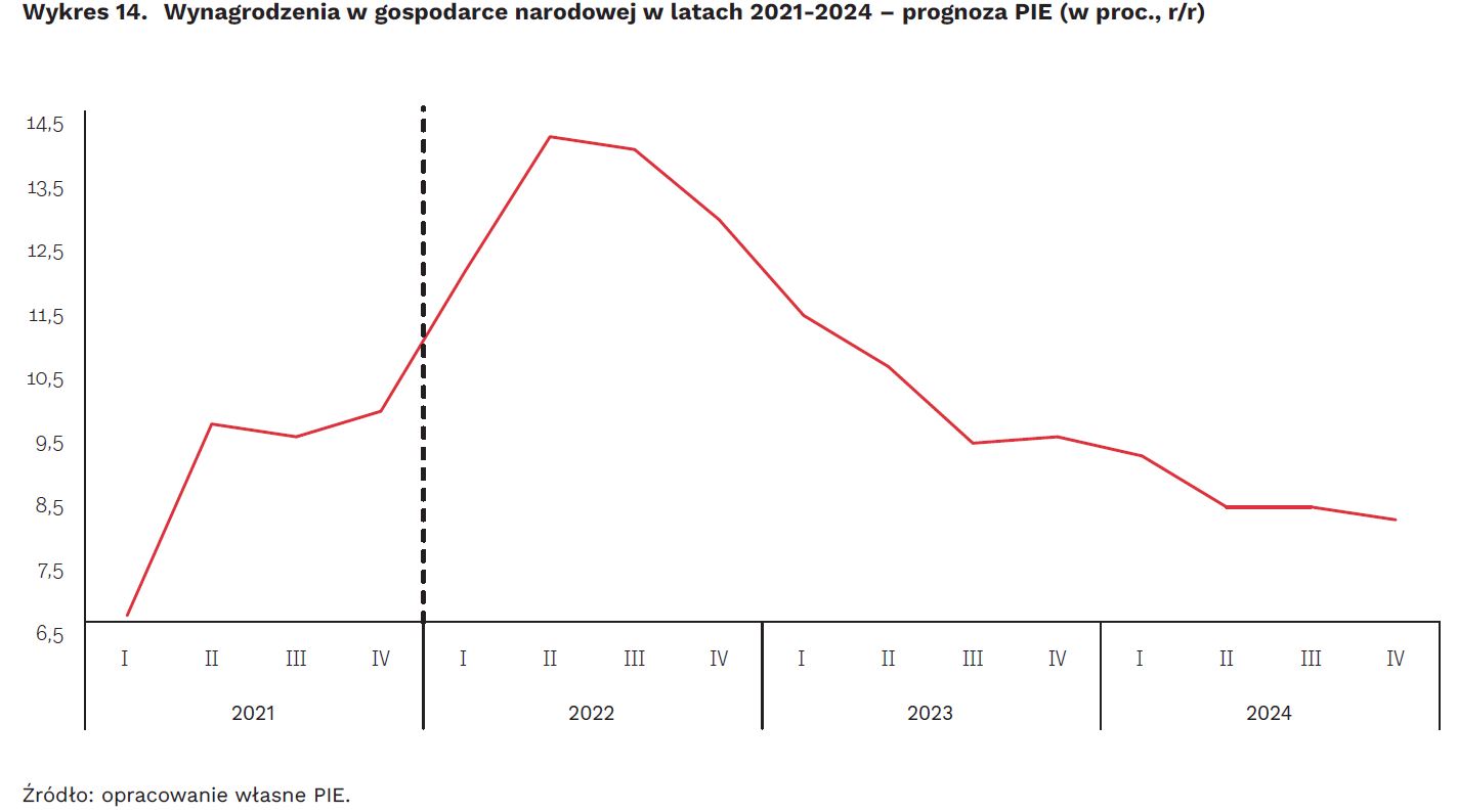 W 2023 r. inflacja będzie spadać i wyniesie średnio 8,6 proc., zaś w 2024 znajdzie się na poziomie ok. 4,5 proc. Niedobory pracowników sprawią, że pomimo ogólnego spowolnienia w gospodarce, utrzyma się wysokie tempo wzrostu wynagrodzeń, które w 2022 r. wyniesie średnio o 13,2 proc, zaś w 2023 r. 10,1 proc. – wynika z „Przeglądu gospodarczego PIE: lato 2022”.