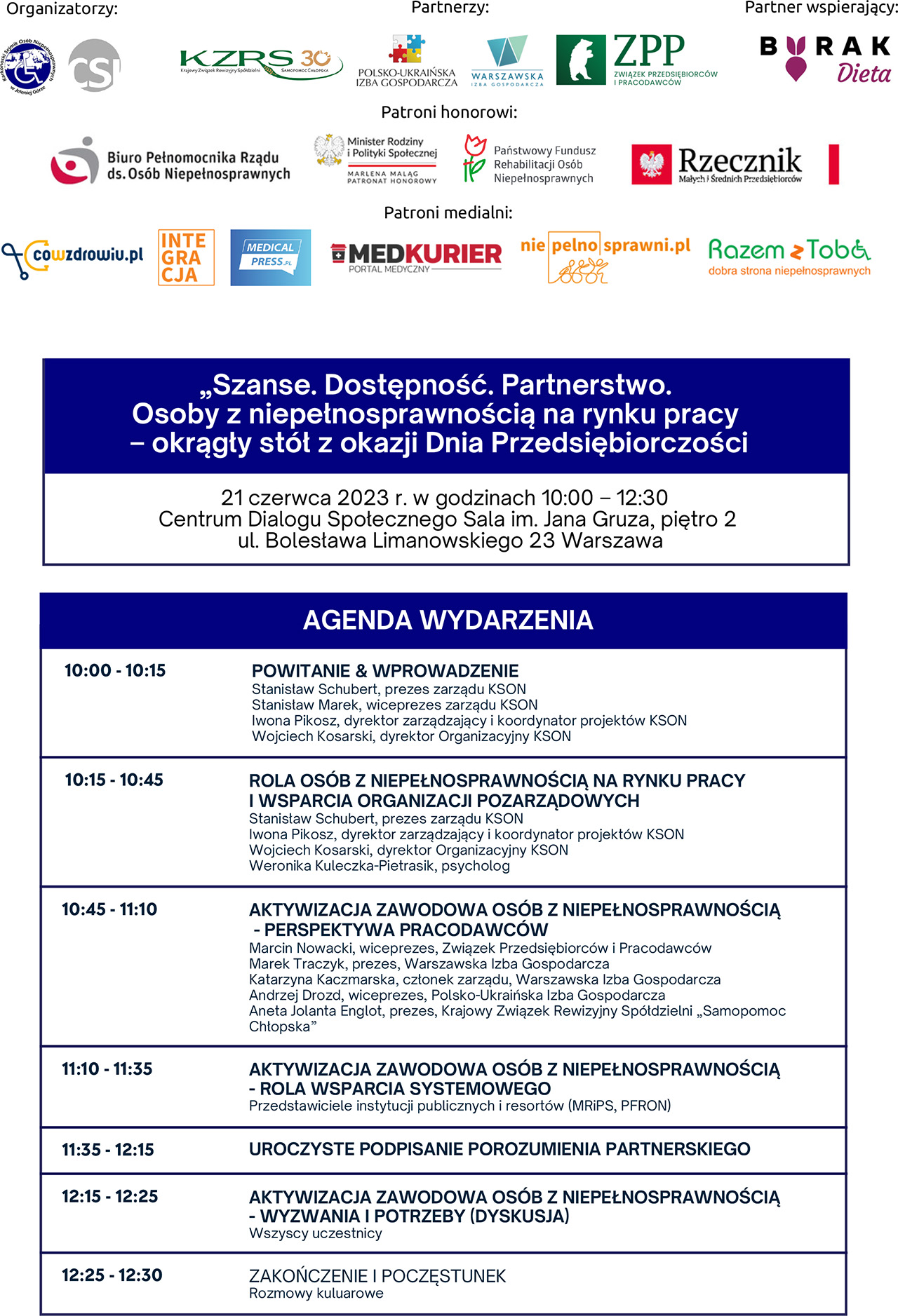 Wydarzenie objął patronatem Rzecznik Małych i Średnich Przedsiębiorstw, partnerami spotkania są Związek Przedsiębiorców i Pracodawców oraz Warszawska Izba Gospodarcza.